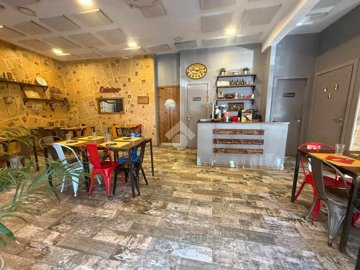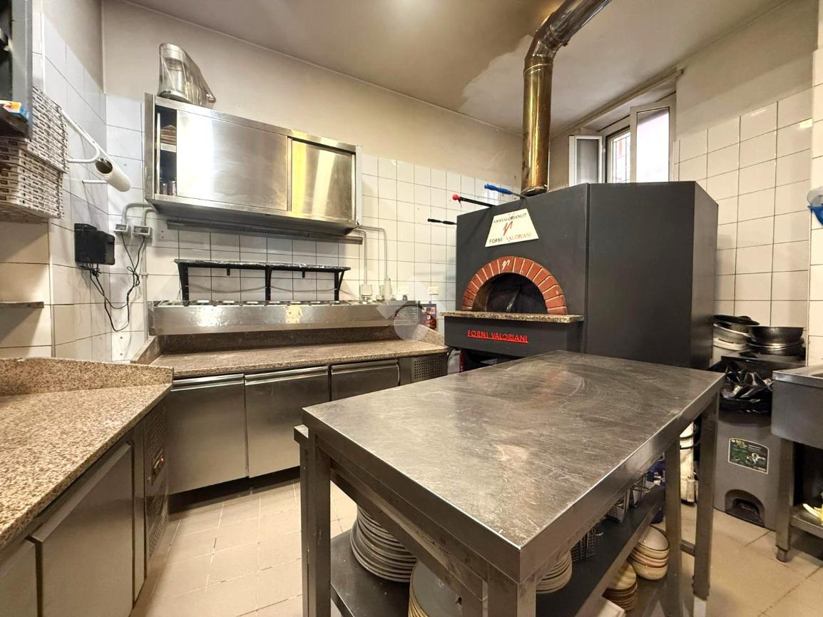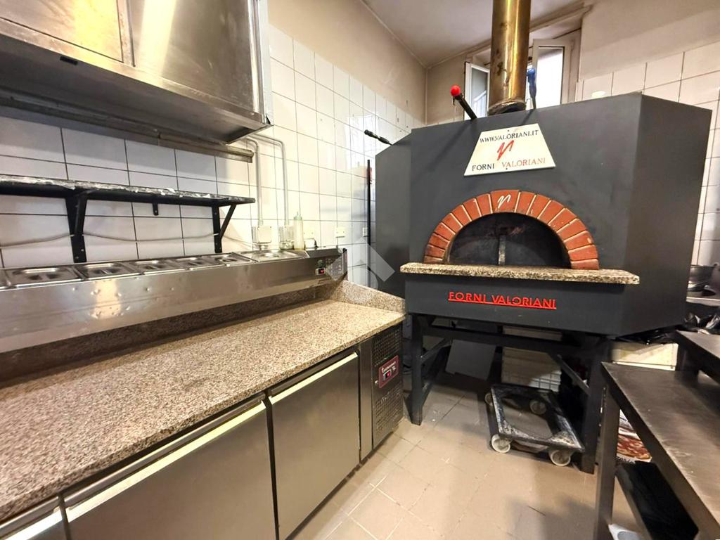 La zona laboratorio, completamente finestrata e dotata di canna fumaria a norma, è attrezzata con macchinari e arredi professionali per la preparazione di pizze e piatti tipici della cucina italiana, che vengono ceduti insieme all’azienda.