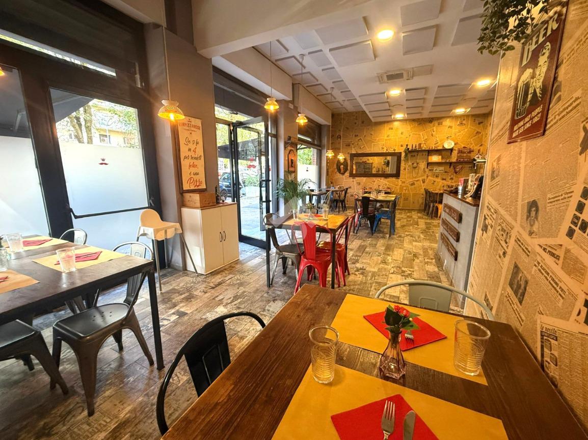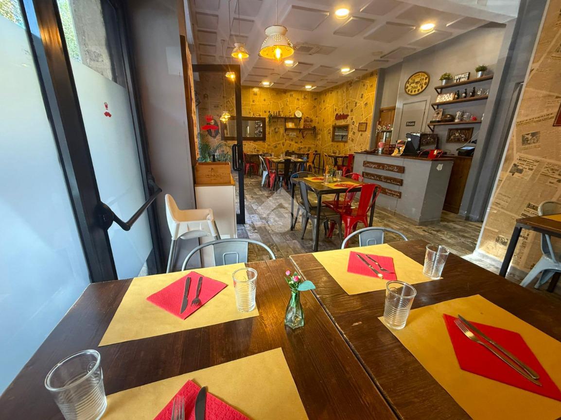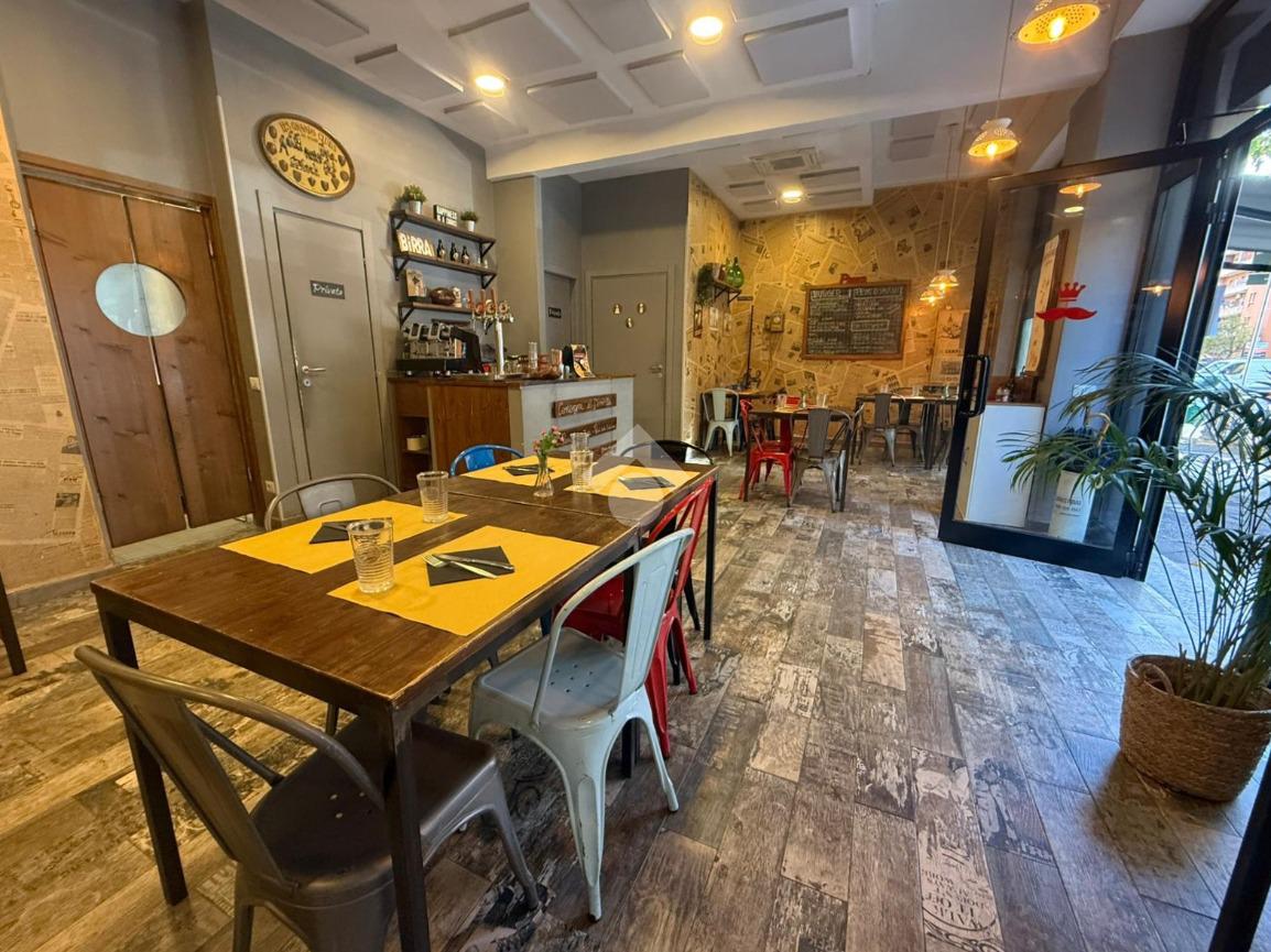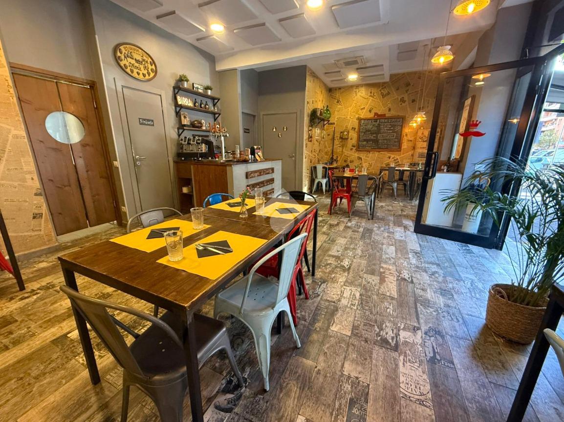 Il locale, di circa 80 mq su unico livello, dispone di tre ampie vetrine su strada e si presenta con una sala accogliente in grado di ospitare circa 30 coperti interni. Gli spazi sono razionalmente distribuiti per garantire una gestione efficiente del servizio, sia in sala che in cucina.