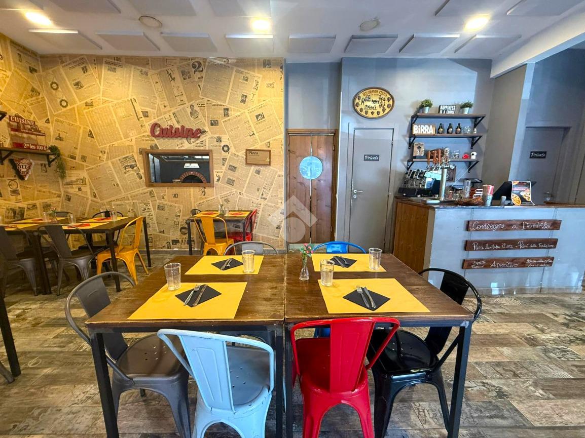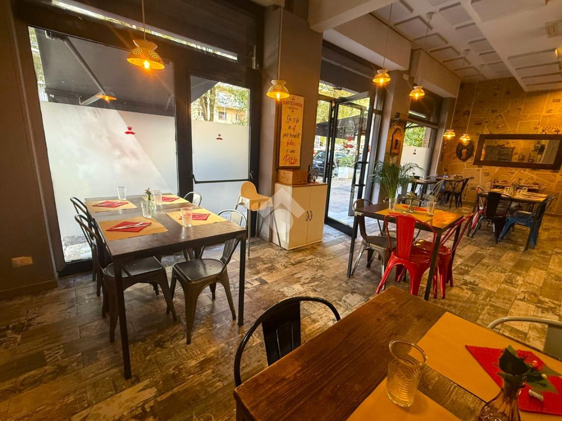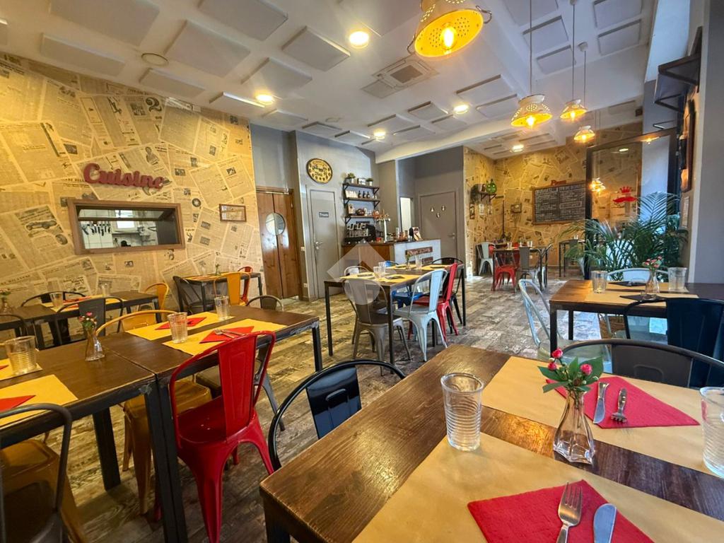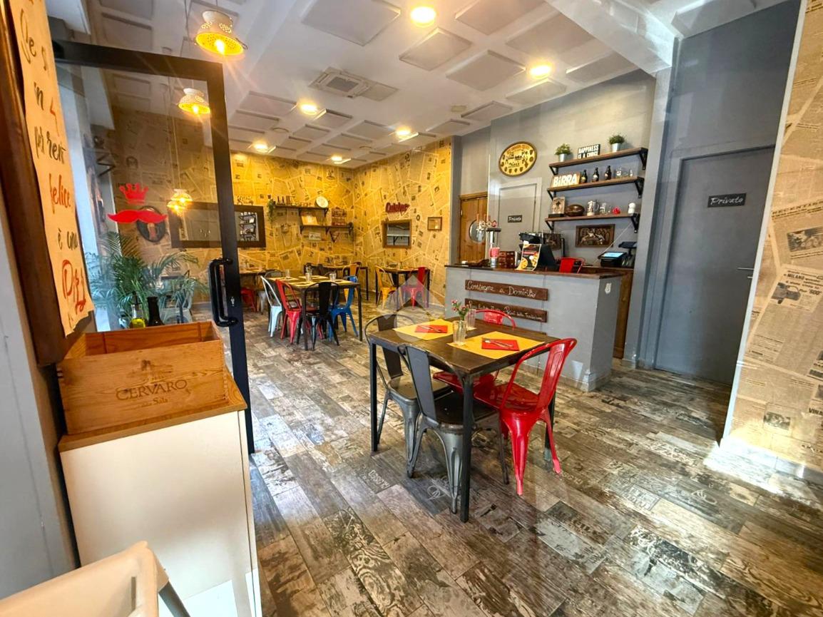 Il locale, di circa 80 mq su unico livello, dispone di tre ampie vetrine su strada e si presenta con una sala accogliente in grado di ospitare circa 30 coperti interni. Gli spazi sono razionalmente distribuiti per garantire una gestione efficiente del servizio, sia in sala che in cucina.