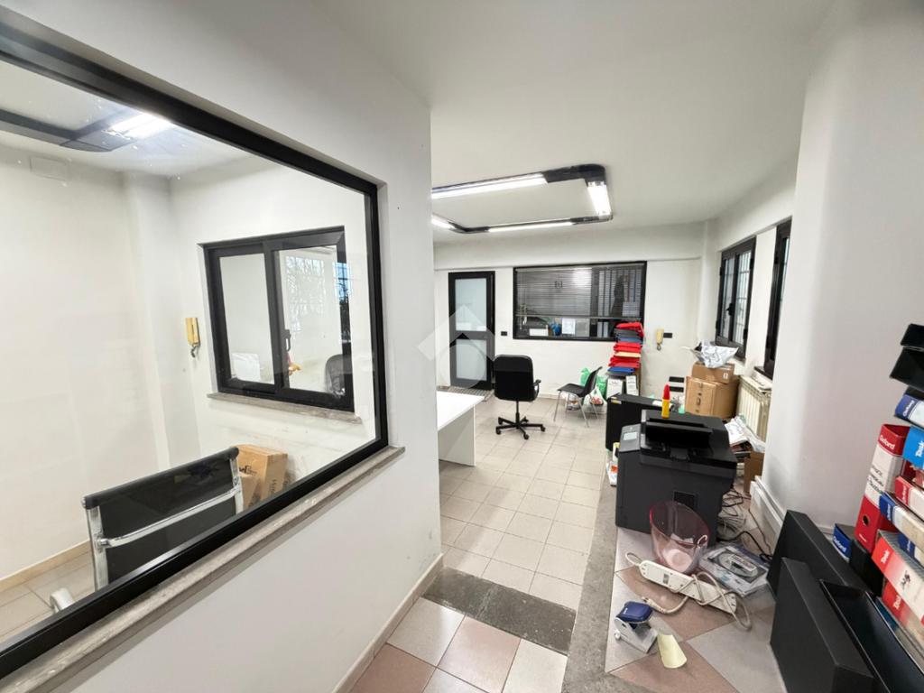 La parte adibita a ufficio (cat. A/10), di circa 60 mq, è composta da due ambienti ben rifiniti, adatti ad accogliere postazioni operative, area reception o direzionale.