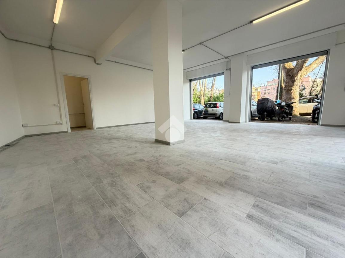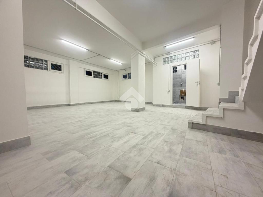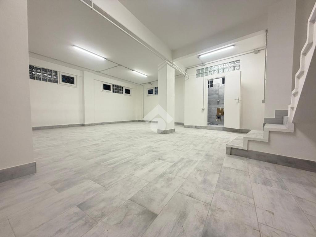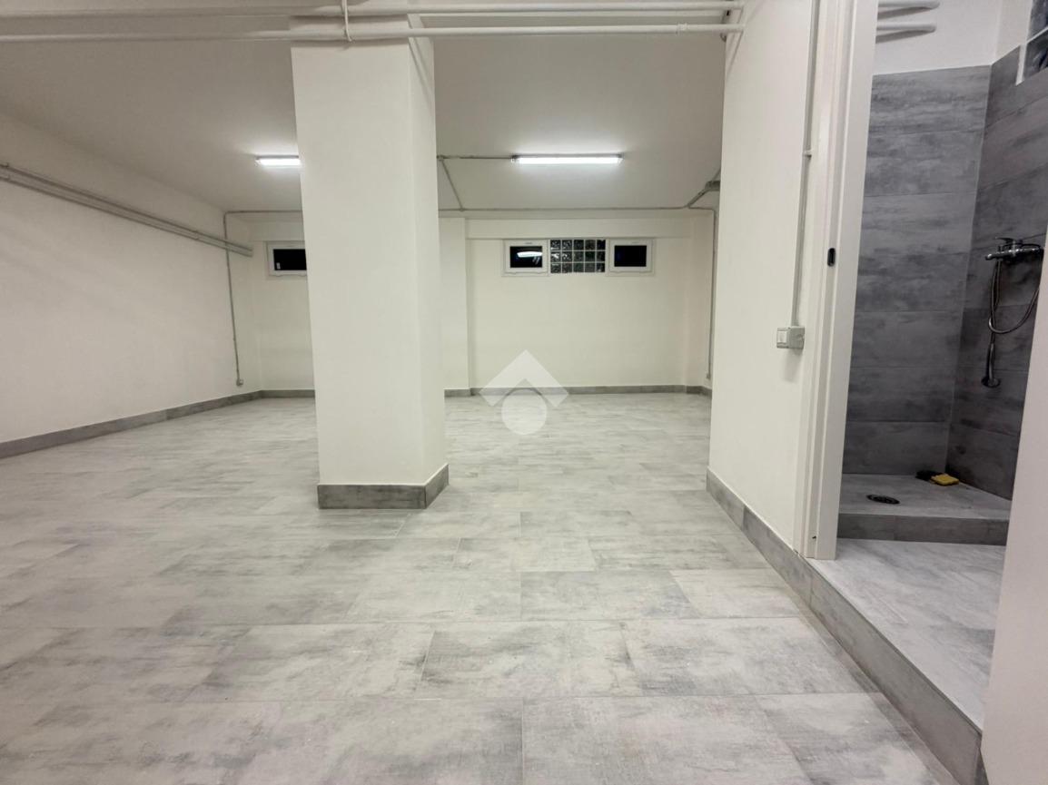 Il locale dispone di quattro vetrine angolari su strada, un importante valore aggiunto per tutte le attività che necessitano di forte impatto visivo, luminosità interna e riconoscibilità. Al piano terra, catastalmente C/1, troviamo un open space di circa 60 mq; al piano S1, collegato da scala interna, si sviluppa un magazzino C/2 di circa 55 mq con servizio.