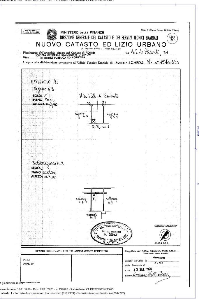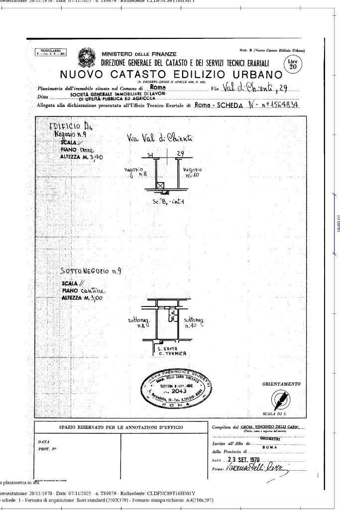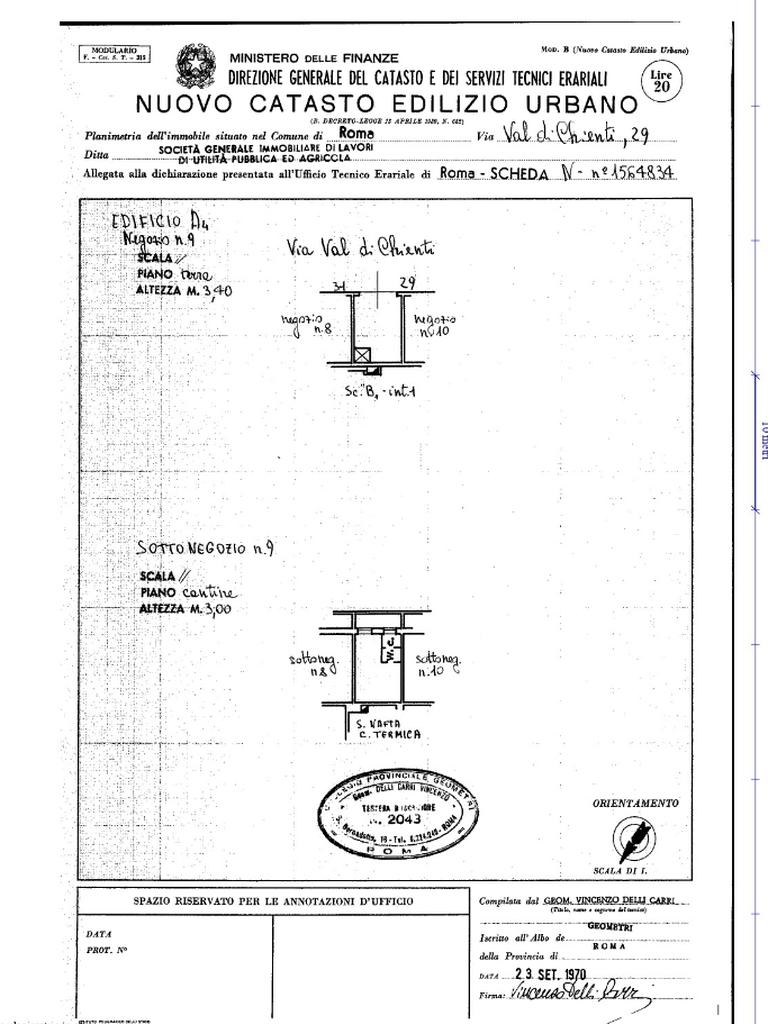Il locale si sviluppa al piano terra per circa 35 mq in un unico ambiente, dotato di due ampie vetrine fronte strada con due serrande elettriche e un’altezza interna di circa 3,40 m. La pianta regolare consente un utilizzo funzionale degli spazi per attività al dettaglio o di servizi.